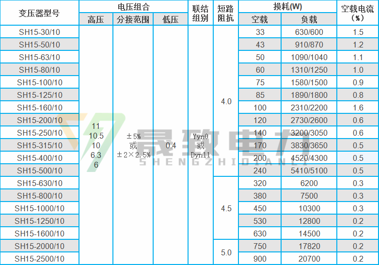 SH15全密封油浸式非晶合金電力變壓器主要技術參數: